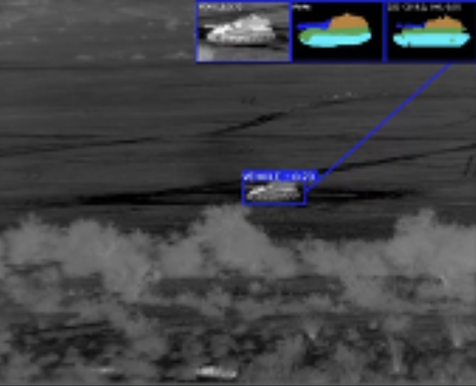 Our ACES software is a multi-tiered ATR solution, with custom, patented algorithms capable of detecting tiny unresolved distant targets, mid-range objects, and counting wheels, identifying weak spots, and providing targeting information for closer targets.